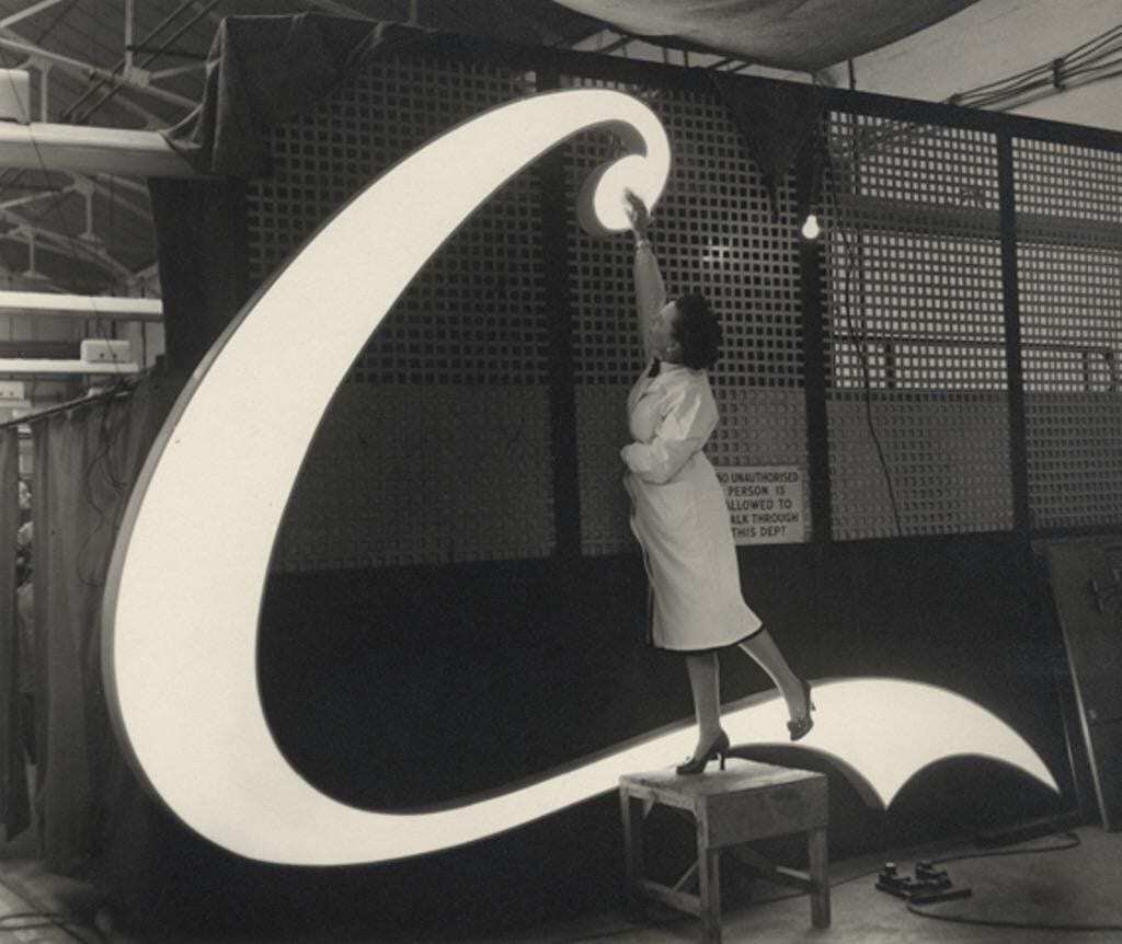 Essas imagens mostram como foi elaborada a instalação do primeiro luminoso de neon da Coca Cola, lá no Piccadilly Circus de Londres, em 1954. Tudo feito pelo “Departamento de Publicidade da Coca-Cola”, em conjunto com um fabricante de sinais, de Wembley. Dos rabiscos iniciais até a metalurgia e soldagem do enorme sinal.