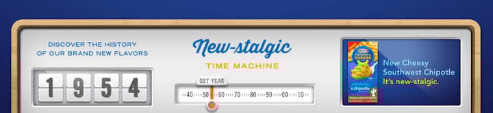 Campanha da Crispin Porter & Bogusky para Kraft, e seu tradicional Macaroni & Cheese. O tema é o New-Stalgic, uma viagem ao passado para criar justamente essa sensação de tradicionalismo.