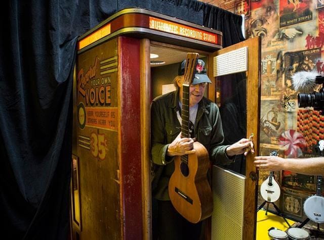 Eis a nova aquisição de Jack White: um Voice-o-Graph (de 1947). O objeto, que passou por restauração, é uma cabine de gravação de vinil de seis polegadas. Qualquer pessoa pode gravar pouco mais de um minuto e depositar o disquinho em uma caixa de correio.