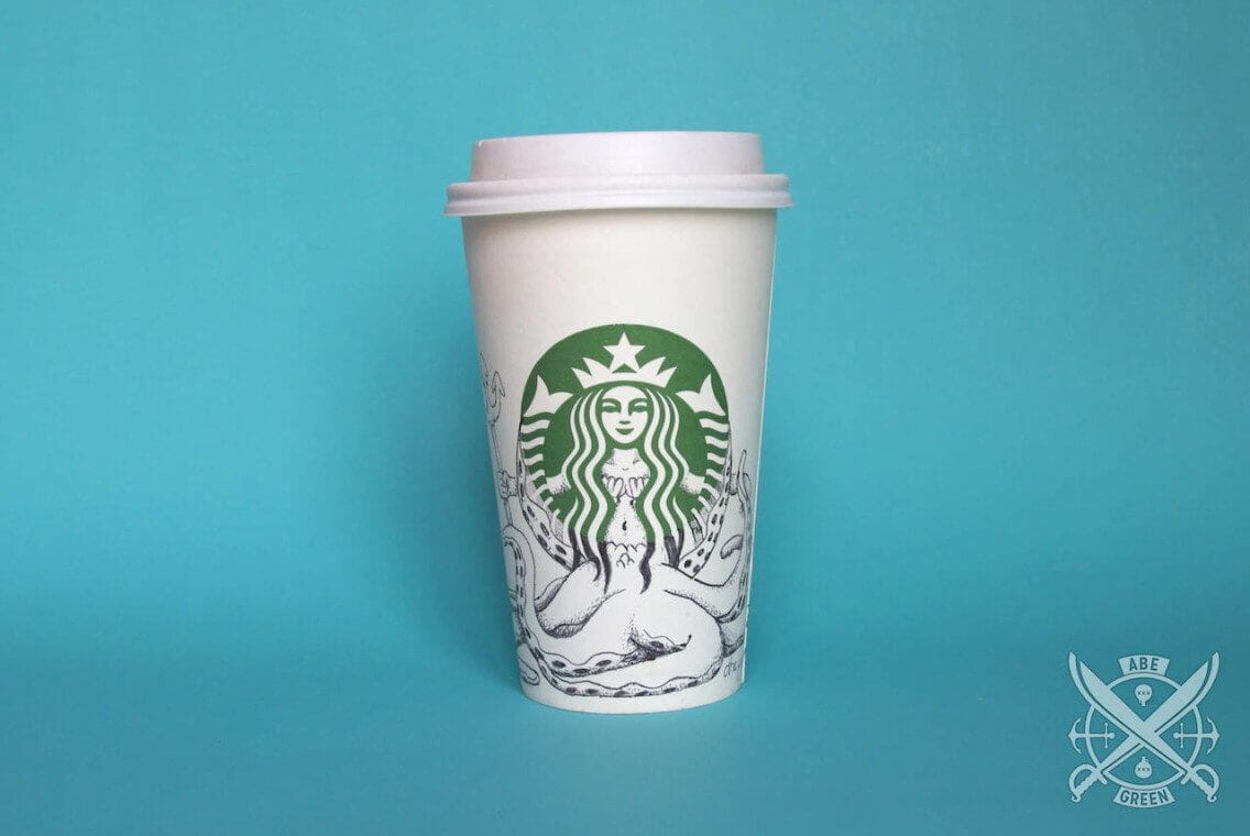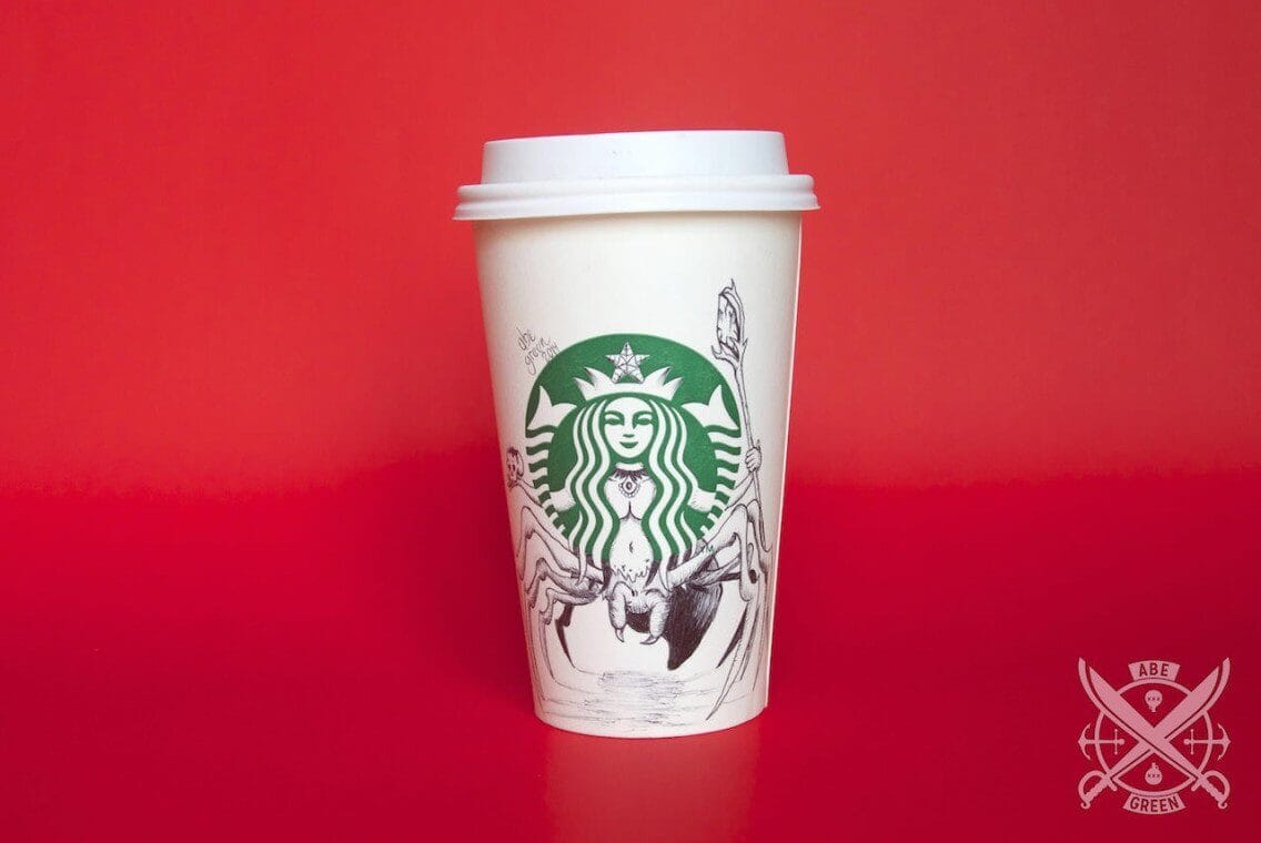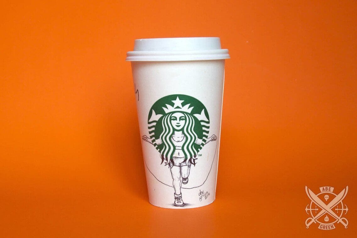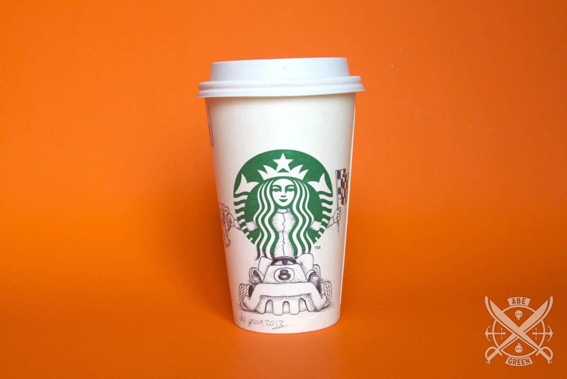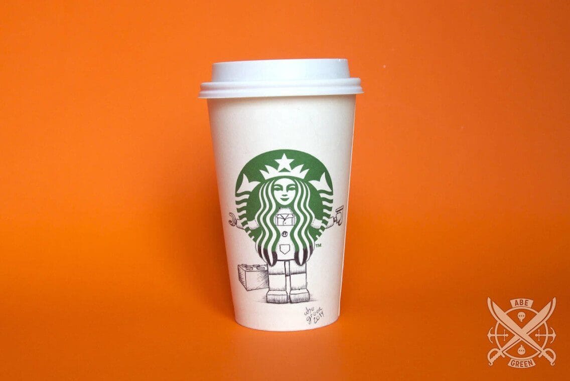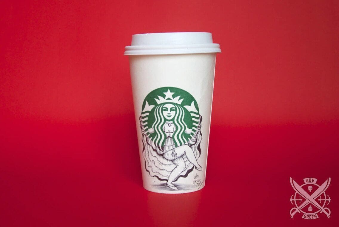 Ilustrações feitas pelo mexicano Abe “Fox” Green, na própria Starbucks, por puro deleite (não confundir com puro ou com leite) (ai) o que mostra mais uma vez como o tédio é o pai da criatividade. Essa coisa de ampliar o enquadramento do logo e mostrar um pouco mais dos personagens, objetos ou formas é sempre um bom estimulo, na verdade, desenhar e complementar outros desenhos é sempre divertido, como nesse post da Paula Romano.