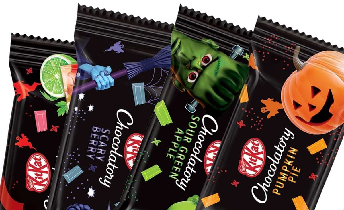 A Nestlé, está lançando uma edição especial de Halloween com quatro novos sabores de KitKat, oferecendo uma uma “experiência inusitada e surpreendente” aos consumidores. As versões Pumpkin Pie (torta de abóbora), Bloody Mary (inspirado no drinque com suco de tomate, limão e pimenta), Sour Green Apple (maçã verde ácida) e Scary Berry (blackberry/amora com um diferencial: chocolate que explode na boca) chegam às lojas KitKat Chocolatory, em São Paulo.