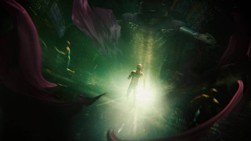 Assustadoras, mas lindas, artes conceituais de Homem-Aranha: Longe de Casa. Todas retratam momentos de ilusões criados pelo vilão Mysterio. As artes – escuras e sombrias – foram criadas pelos artistas Jonathan Opgenhaffen, Thomas du Crest e Rostyslav Zagornov: