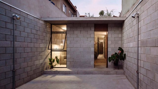 A casa é toda feita em concreto e bloco aparente, e foi construída com um investimento de 150 mil reais. Foi projetada do zero pelo escritório Terra e Tuma Arquitetos e levantada em um curto período de tempo, apenas seis meses, ficando pronta em 2014. Ela possui um total de 95 metros de área construída, tem dois quartos, cozinha, sala de TV e jantar, além da garagem e uma laje aparente.
