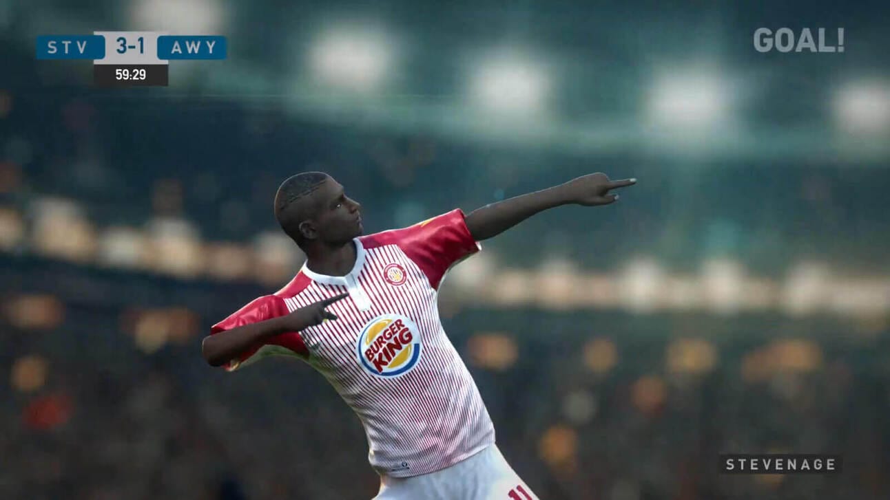 Como os jogadores virtuais do Stevenage vestem os mesmos uniformes da marca BK que os jogadores do mundo real, o truque é realmente apenas uma maneira de fazer com que muitas imagens esportivas com o tema BK circulem nas redes sociais – uma escalada inteligente do valor típico do patrocínio de camisas dentro do mundo dos jogos.