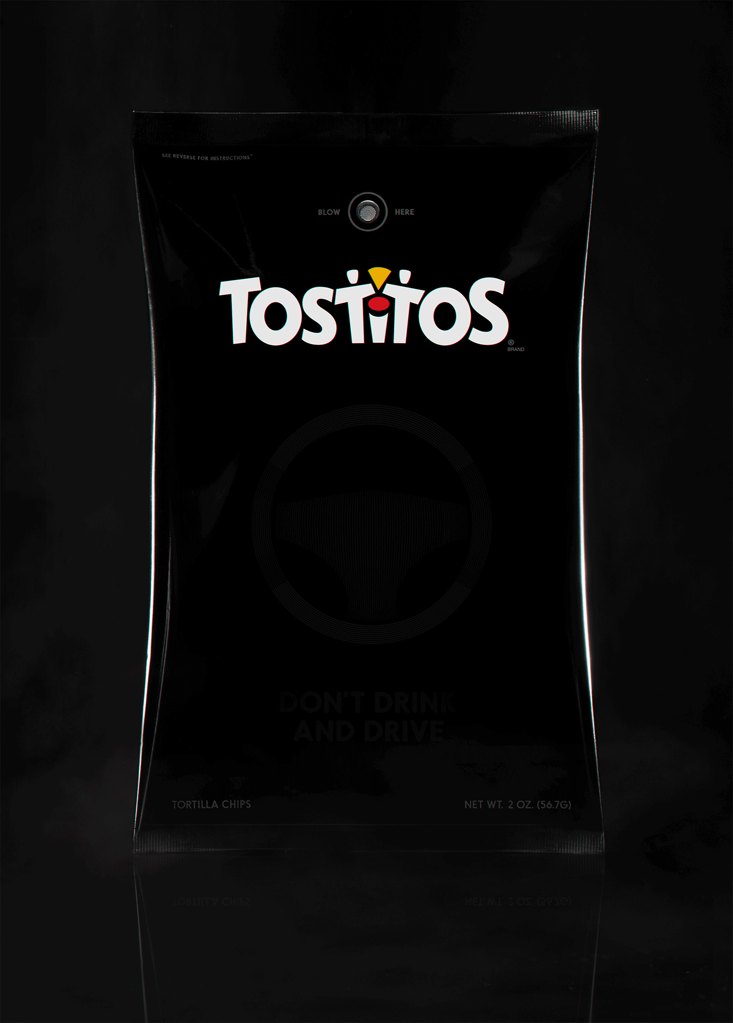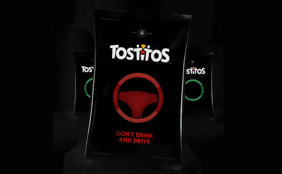 É isso mesmo. A Frito-Lay e a Goodby Silverstein & Partners desenvolveram uma edição especial de Tostitos’ para o Super Bowl com uma embalagem equipada com um sensor capaz de detectar traços de álcool no hálito de uma pessoa. Se o álcool for detectado, o sensor fica vermelho e forma uma imagem de um volante de carro, gera um código promocional de Uber com desconto e que pode ser acionado apenas aproximando o celular.