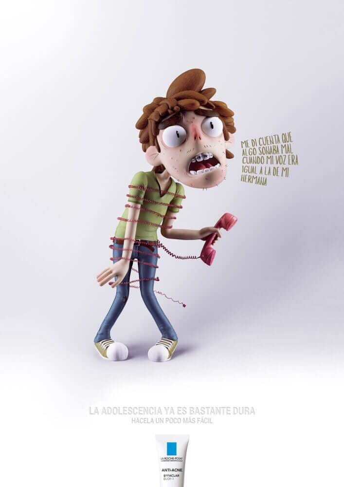 Campanha argentina para o anti-acne da La Roche-Posay, com ótimas ilustrações de Rocio “Toshi” Terceros e 3D de Dennis Rocha (Durcot). O projeto foi feito para a Jack and Jose, de Buenos Aires.