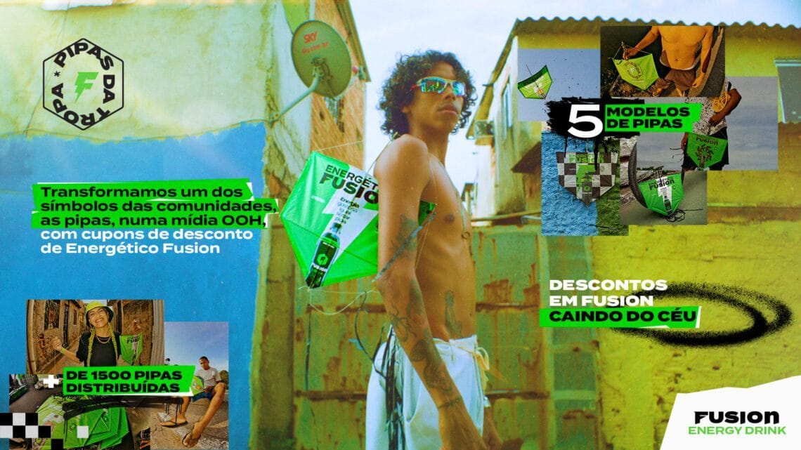 O céu de Vigário Geral, no Rio de Janeiro, foi tomado por cores. E isso não foi culpa das nuvens carregadas. As Pipas da Tropa, uma ativação criada pelo energético Fusion, lançou o novo posicionamento da marca, que quer construir um relacionamento com os moradores das favelas.