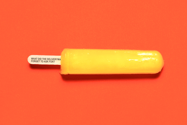 Não lembro se alguma marca já usou isso, mas se não usaram, deveriam: picolés com frases no palito, só que em dois tempos. Uma pergunta que só é respondida depois que ele é consumido (ou quando derrete).