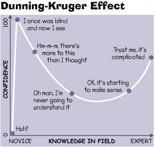Bom, lá no alto tem um vídeo que explica melhor o efeito – que tem nome inclusive, é o “Efeito Dunning-Kruger” (não confundir com efeito “Fred-Kruger”).