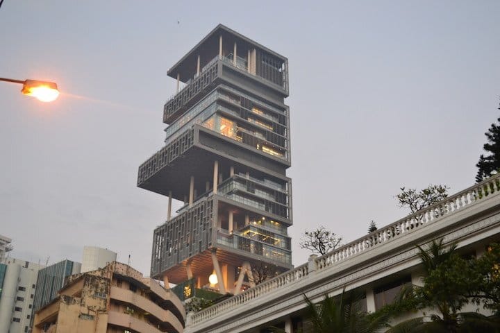 Ou seja, o bilionário Mukesh poderia ter construído 2 Taj Mahals, poderia ter imaginado a nova maravilha do mundo, mas preferiu construir esse prédio que chamou de Antilia provavelmente escrito em cursiva na porta, como um prédio qualquer.