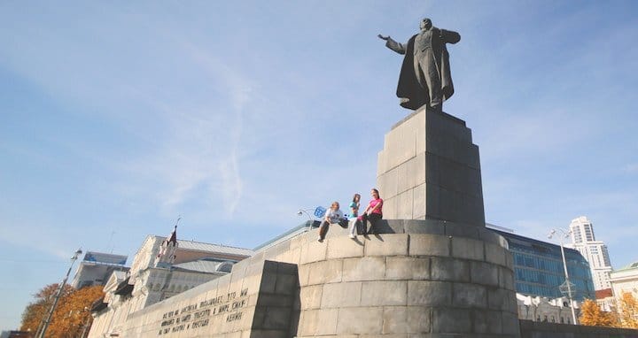 Uma das cidades mais próximas do marco é Yekaterimburg. Foi lá onde em 1918 os Bolcheviques assassinaram os Romanov. Toda a família do ex-Czar está enterrada lá, menos a princesa Anastácia que escapou da Revolução Russa e virou desenho animado da Fox Animation Studios.